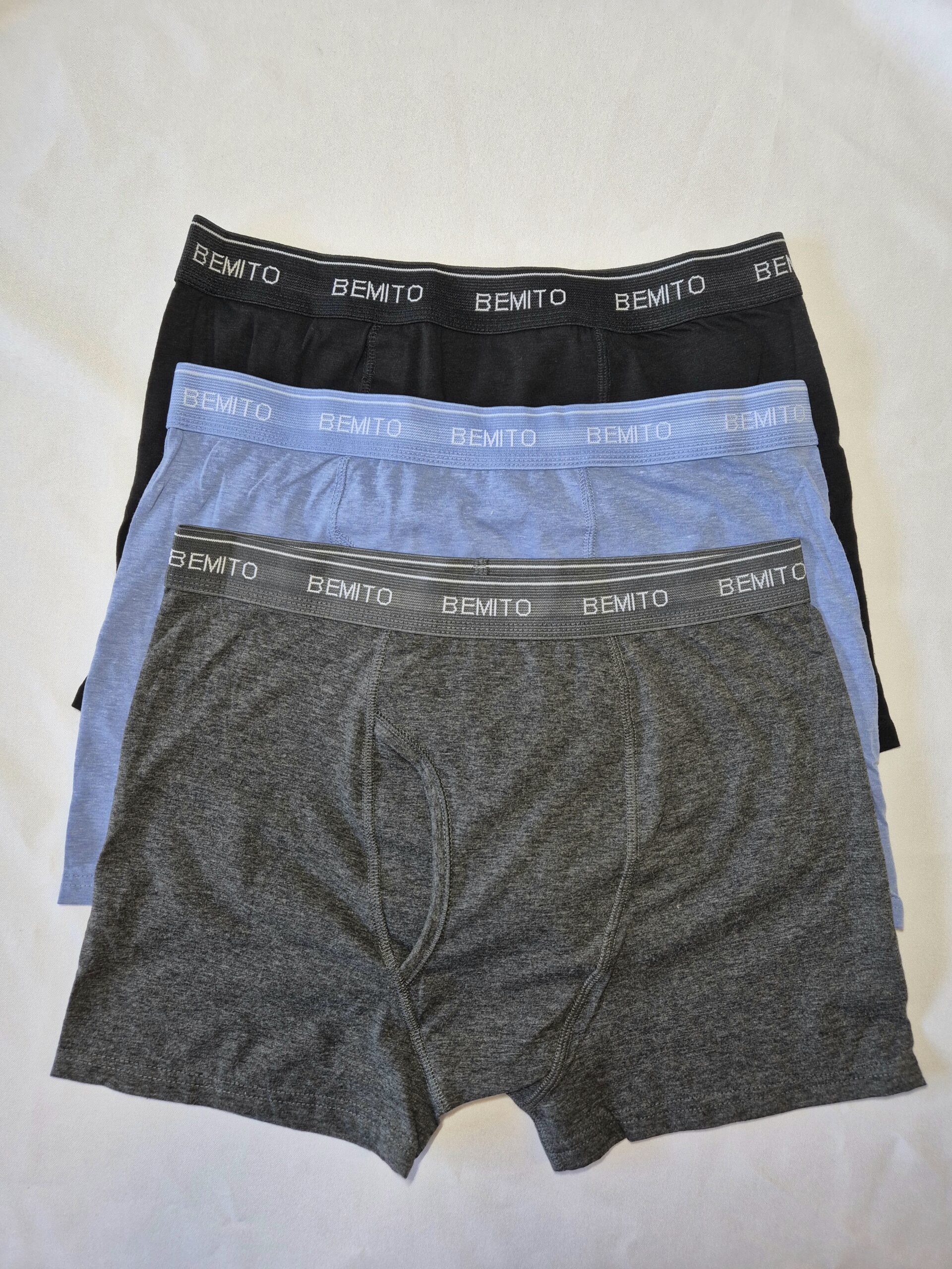 Un lot de 3 boxers pour homme, confectionnés avec soin et qualité par la marque Bemito.