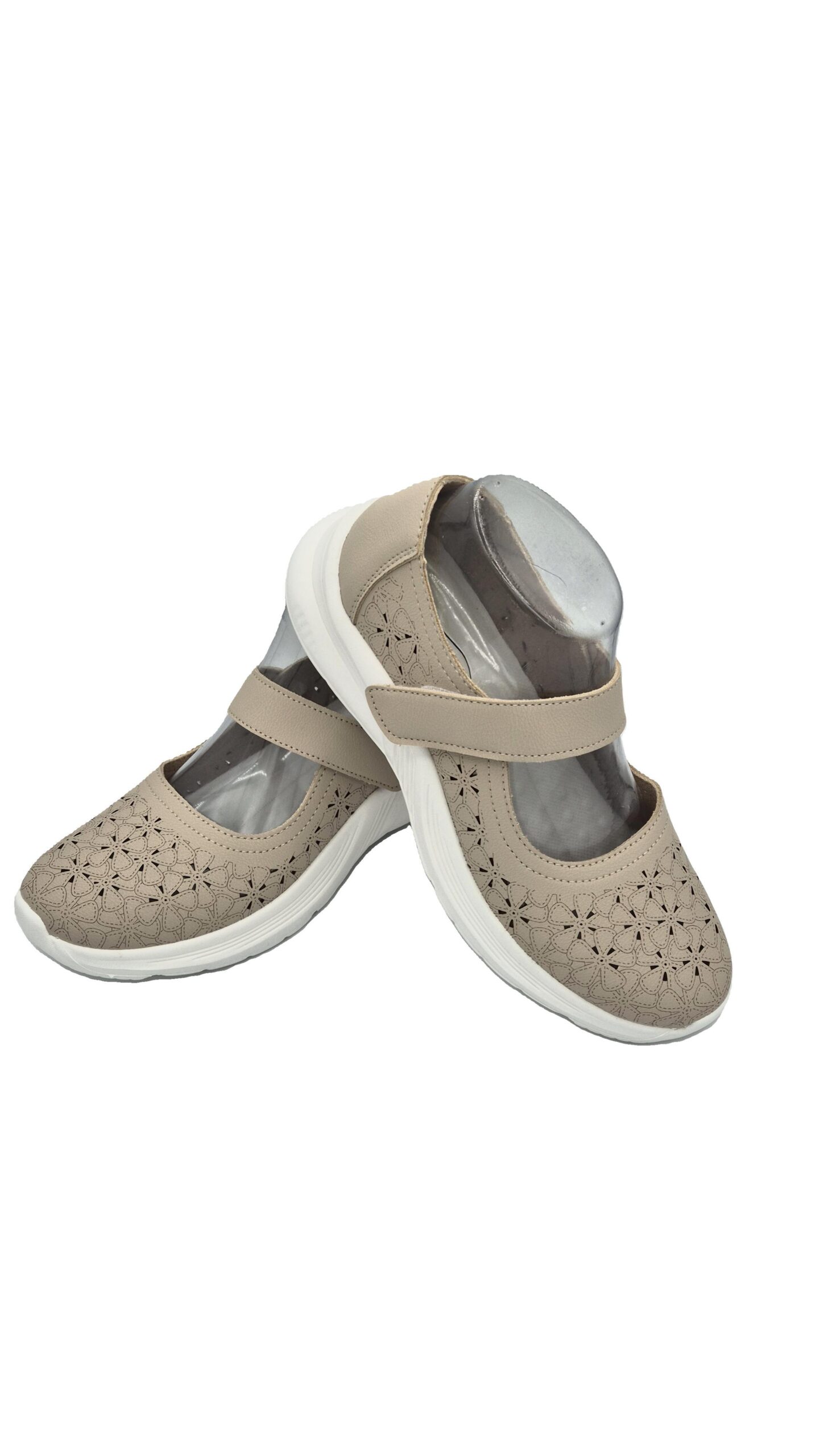 Cette ballerine de couleur beige clair est élégante et équipée d’une bride auto-agrippante pour un maintien ajusté, d’une semelle anti-dérapante pour plus de sécurité, et d’une semelle souple pour un confort optimal. L’avant du pied est bien maintenu, offrant une stabilité et un confort tout au long de la journée.