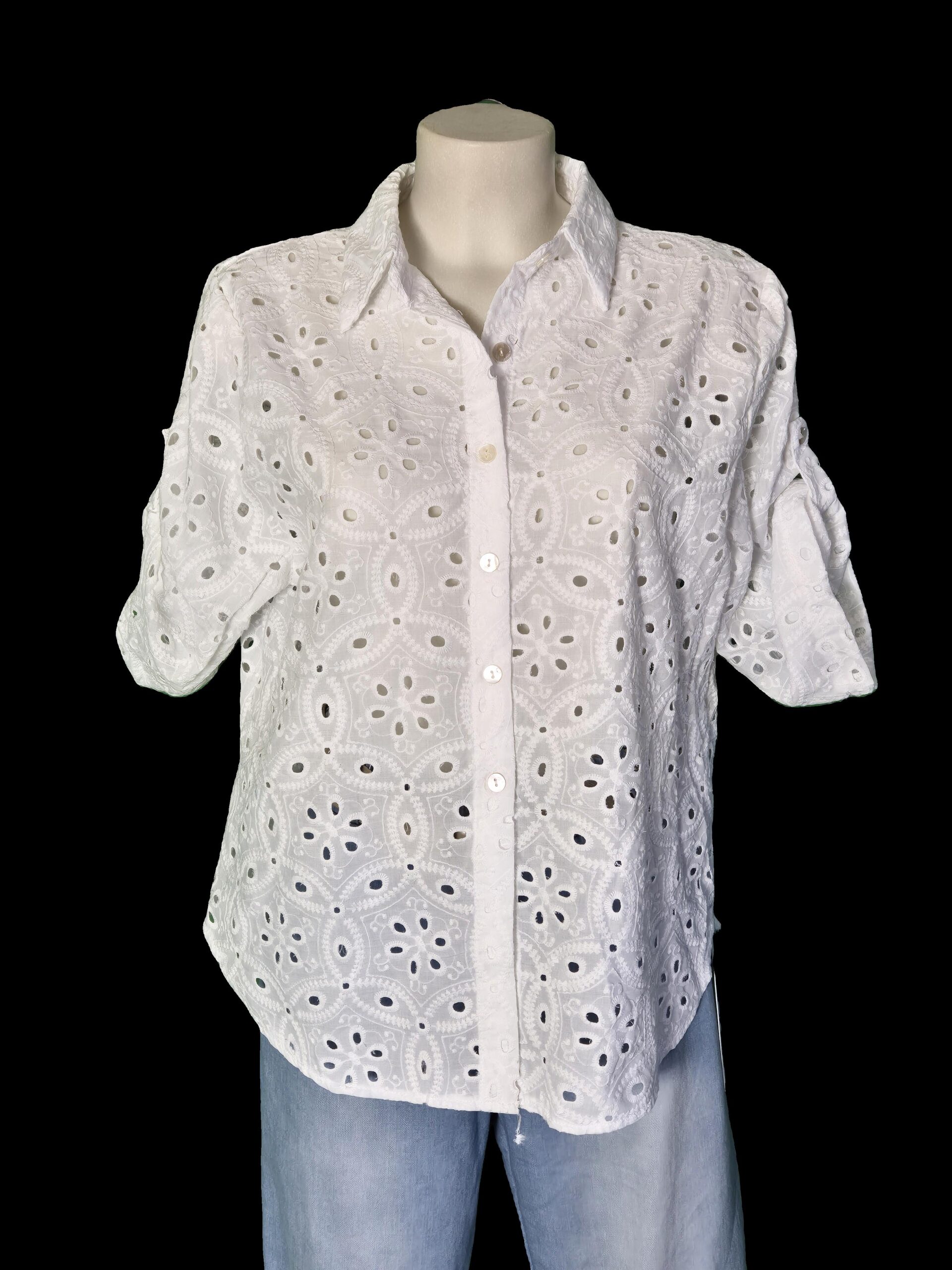 Chemisier « perce-neige » en dentelle très léger et habillé à la fois complètera votre garde-robe.